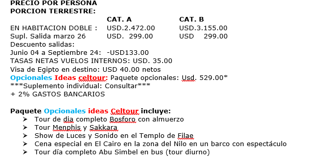 EL PROGRAMA EN EGIPTO INCLUYE: