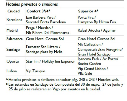 • Visitas mencionadas como opcionales o las que el guía correo ofrezca para aprovechar el tiempo libre.