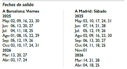 Salidas desde Mayo 02 de 2025 a Abril 25 de 2026