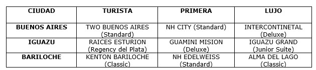 – Traslados Aeropuerto BUE / Hotel / Aeropuerto BUE en servicios regular.