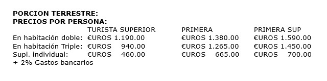 • En general ningún servicio que no este claramente estipulado en el presente itinerario