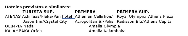 •Tasas de estancia en Grecia (pago directo en los hoteles) aplicable por habitación / por noche en EUROS (CAT. 3* = 5,00 € / CAT. 4* = 10,00 € / CAT. 5* = 15,00 €)