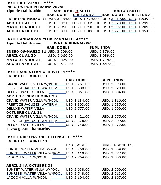 PRECIO POR PERSONA EN DÓLARES: