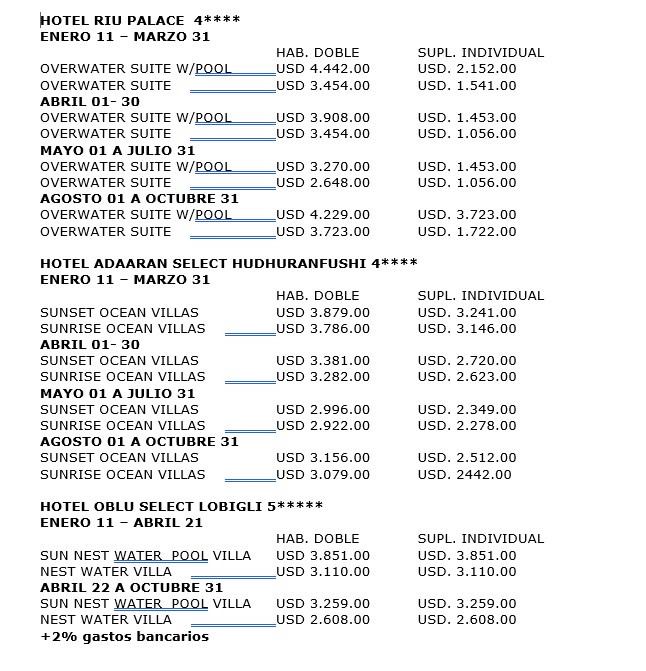 • En general ningún servicio que no esté claramente estipulado en el presente itinerario