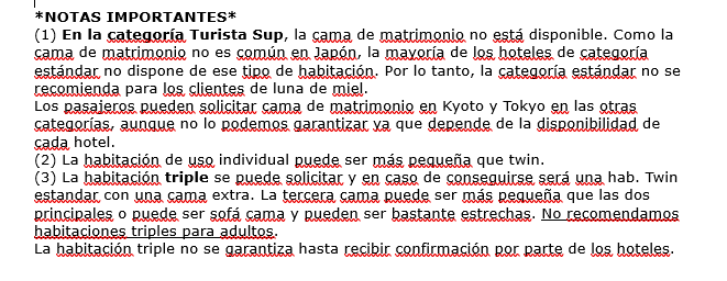 • En general ningun servicio que no este claramente descrito en el itinerario