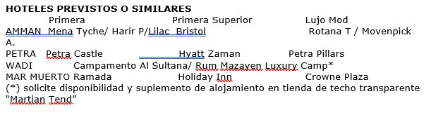 Propinas y gastos de naturaleza personal tales como bebidas en las comidas Cualquier servicio no especificado en itinerario.