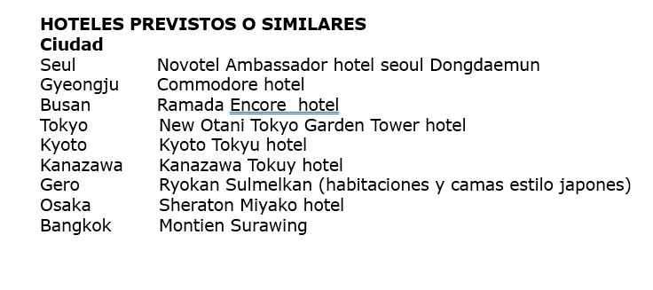 • En general ningún servicio que no este claramente descrito en el itinerario