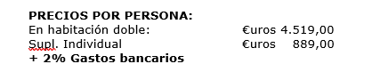 – 5 noches en los hoteles indicados o similares, con desayuno incluido.