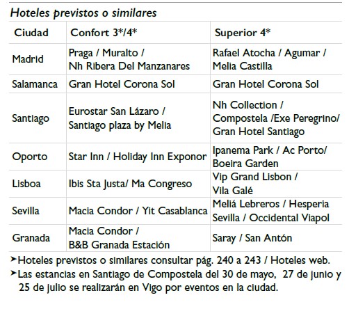 Descubriendo: Madrid (3) / Segovia / Ávila / Salamanca (1) / Santiago de Compostela (1) / Viana do Castelo / Oporto (2) / Aveiro / Fátima / Lisboa (2) / Mérida / Sevilla (2) / Córdoba / Granada (1)