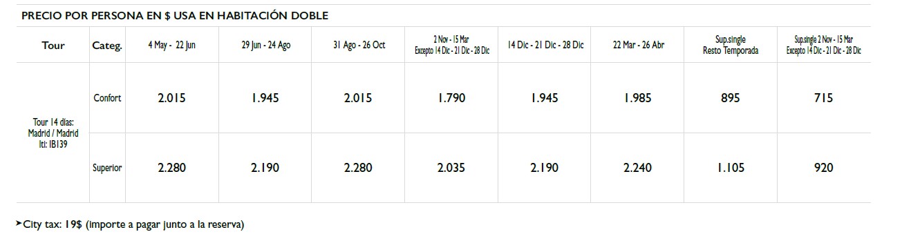 El precio del viaje ha sido calculado en base a los tipos de cambio, tarifas de transporte, costes del carburante y tasas e impuestos aplicables en la fecha de edición del programa o de las posteriores que, en su caso, se hayan hecho públicas de forma impresa.
