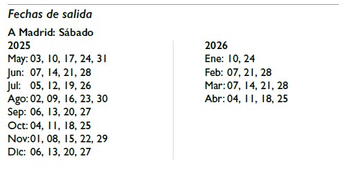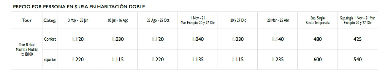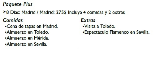 8 Días: Madrid / Madrid: 275$ Incluye 4 comidas y 2 extras