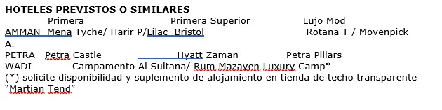 Propinas y gastos de naturaleza personal tales como bebidas en las comidas Cualquier servicio no especificado en itinerario.
