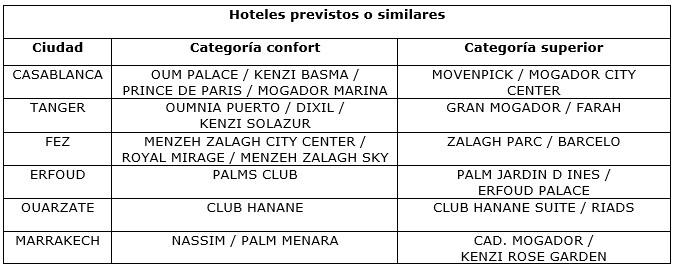 • Alojamiento y desayuno en hoteles de categoría seleccionada en habitaciones dobles con baño o ducha.
