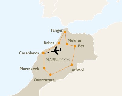 Descubriendo: Casablanca (1) / Rabat / Tánger (1) / Xaouen / Meknes / Fez (1) / Erfoud (1) / Tinerhir / Gargantas del Todra / “Ruta de las Kasbahs” / Kelaa M´Gouna / Ouarzazate (1) / Kasbah Ait Ben Haddou / Marrakech (2)
