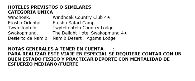 EL PROGRAMA DE NAMIBIA INCLUYE: