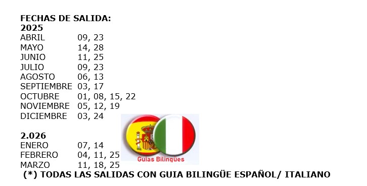 * Excursiones mencionadas en el programa en servicio regular compartido con guía de bilingüe español/Italiano.