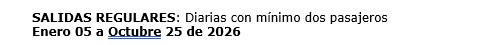 Salidas de Enero 10 a Octubre 25 de 2026