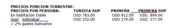 PRECIO POR PERSONA EN DÓLARES: