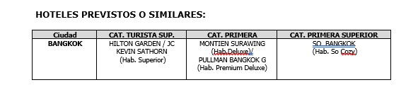 Hoteles Previstos o similares