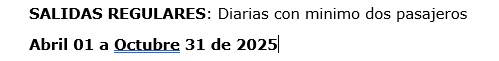 En general ningún servicio que no esté claramente estipulado en el presente itinerario