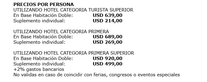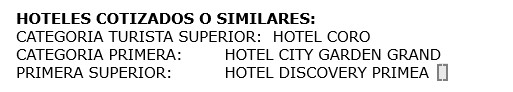 • En general ningun servicio que no este claramente descrito en el itinerario