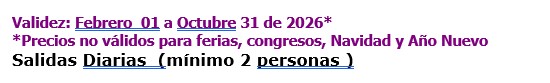 ** Estos precios no aplican en época de ferias, congresos y eventos especiales. **