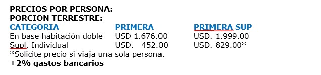 PRECIO POR PERSONA EN DÓLARES: