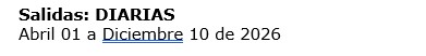 FECHAS DE SALIDA: Diarias*