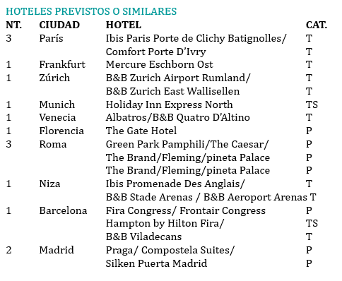 Modificaciones y cancelaciones Caso en el que el usuario desee modificar o cancelar su/s re – serva/s: Antes de prestarse los servicios: El usuario debe prestar especial atención a las condiciones de cancelación que se describan en este sitio web, y, caso de haberlo, en el folleto informativo que se ponga a su disposición en la agencia. En el supuesto de modificaciones en la reserva solicitada, maseuropa no puede asegurar la disponibilidad del circuito para las nuevas fechas o condiciones requeridas. Una vez recibida la solicitud, se estudiará la posibilidad de ofrecer otro circuito y se someterá éste a la aceptación al usuario. Los gastos de gestión por modificaciones de cualquier circuito contratado a través de maseuropa dependerán, en su caso, de los provee – dores que integran los circuitos, de la agencia y de la normativa vigente en ese momento. Una vez iniciada la prestación de servicios: En el caso de so – licitar el usuario cualquier modificación de las condiciones contratadas una vez iniciado el disfrute de los servicios, maseuropa se compromete a realizar todos los esfuerzos necesarios para poder satisfacer al usuario en sus peticiones, sin poderlas garantizar. Cualquier modificación solicitada que suponga nuevas condiciones con el proveedor, será ofrecida con carácter previo al usuario para que el mismo las pueda aceptar. La cancelación de los circuitos contratados que no esté am – parada legalmente en un motivo de fuerza mayor, conllevará la obligación de abono de los gastos de gestión, los de anulación, si los hubiere, y una penalización consistente en el 5 por ciento del importe total del viaje, si la cancelación se produce con más de diez y menos de quince días de antelación a la fecha del comienzo del viaje; el 15 por ciento entre los días tres y diez; el 25 por ciento dentro de las cuarenta y ocho horas anteriores a la salida; y el 100 por cien de no presentarse a la salida. Se informa al usuario que en el caso de que maseuropa estuviera sujeta a condiciones económicas especiales de contratación, tales como flete de aviones, buques o tarifas especiales (cupos mínimos/ grupos para realización del viaje), etc, se podrán establecer gastos de cancelación superiores a los establecidos en el párrafo anterior, los cuales se informarán y se establecerán de acuerdo con las presentes condiciones generales y con las condiciones particulares que, en su caso, sean aceptadas por el usuario en el momento en el que se formalice la reserva. 5. Precio El precio que se mostrará en la web como precio final constituye efectivamente el precio final que se cargará en la tarjeta del cliente, para el total de los viajeros, incluyendo tanto los impuestos de aplicación como los gastos de gestión que constituyen la retribución de maseuropa por su intermediación. El precio no incluye ningún otro concepto, especialmente eventuales costes adicionales que tuviere que soportar o quisiere acometer el usuario con causa en las políticas de equipaje de aerolíneas, seguros adicionales, documentación administrativa, visados, tasas de acceso o aduaneras, etc. En ocasiones, actualizará los precios de determinados servicios integrados en el circuito (si éstos fuesen ofrecidos por los proveedores en el medio online y estuvieren digitalmente integrados con la web de maseuropa ofreciendo al usuario un resultado basado en el importe matemáticamente inferior posible, sin que maseuropa pueda técnicamente aplicar en esta búsqueda circunstancias modificativas del precio tales como la política de equipaje, servicios complementarios al transporte, descuentos de residentes o de colectivos, etc.) Los precios de los vuelos se actualizan constantemente por parte de las aerolíneas fluctuando multitud de veces al día. Es posible, por tanto, que en un proceso de reserva iniciado por un usuario con unos parámetros de búsqueda determinados e idénticos, se arrojen por maseuropa unos resultados de precio distintos en dependencia del momento concreto en el que se realicen las búsquedas. Es incluso posible, que en una misma búsqueda que se prolongue, el precio ofertado, oscile. En ningún caso, una vez mostrado el precio en la pasarela de pago, éste diferirá del cargo que se realice en la tarjeta del usuario. El precio se ofrecerá en dólares. En los casos en los que el precio se muestre en una divisa distinta al dólar, se aplicará el tipo de cambio en vigor señalado por el Banco Central Europeo en el momento de la formalización de la reserva. En ningún caso maseuropa se hará responsable de los eventuales recargos o pérdidas que el usuario tenga que soportar con causa en el cambio de moneda aplicable en el cargo por parte de la entidad bancaria del importe del circuito en moneda distinta al dólar. maseuropa podrá lanzar promociones a través de las cuales se pueda acceder a circuitos en unas condiciones especiales, o se pueda aplicar al precio de éstos un descuento determina – do. En tales casos, la plataforma solicitará al usuario la clave o código promocional durante el proceso de reserva, aplicán – dose el descuento sobre el precio mostrado. Las condiciones, limitaciones y exclusiones para beneficiarse de tales ofertas se detallarán en las bases de cada promoción concreta. De existir un error tipográfico en alguno de los precios mostra – dos y si algún usuario hubiera tomado una decisión de com – pra basada en dicho error, maseuropa asumirá el error dando plena eficacia a la compra, excepto en el caso que dicho error marque una diferencia tan desproporcionada respecto al pre – cio medio de mercado para ese servicio que el error resulte obvio para cualquier consumidor de diligencia media.