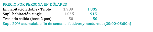 ** Estos precios no aplican en época de ferias, congresos y eventos especiales. **