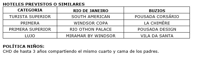 • Traslado hotel en Búzios – Hotel en Río (Servicio Portugués).