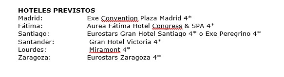 *Las Misas se podrán celebrar solo cuando el grupo viaje acompañado por un sacerdote.