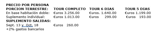 ***Para que la salida sea operativa se requiere una inscripción de al menos 30 participantes, 45 días antes el operador local reconfirmara la operación del programa tal cual se ofrece.