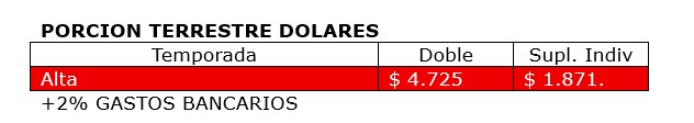 – Propinas a guias, choferes y maleteros (en los hoteles donde exista este servicio)