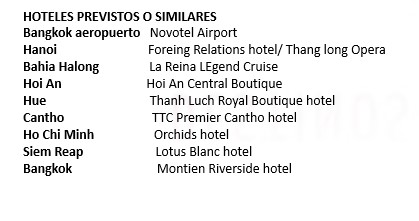– En general ningún servicio que no esté claramente especificado en el presente itinerario