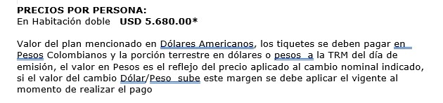 Para realizar reservas en firme se requiere un depósito del 30% del valor total de la cotización por persona y cuyo valor será abonado al pago total.