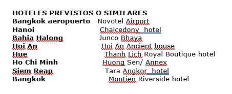– En general ningún servicio que no esté claramente especificado en el presente itinerario