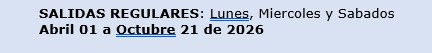 Salidas  de Abril 01  a Octubre 21 de 2026