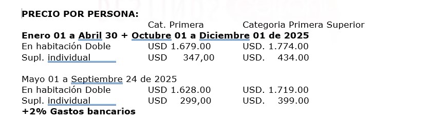 APLICAN CONDICIONES GENERALES DEL FOLLETO IMPRESO DESTINOS CELTOUR 2025