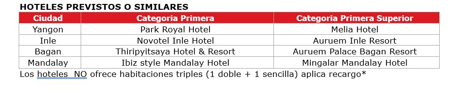 – Vuelos domésticos en clase económica (Yangon-heho- Bagan)