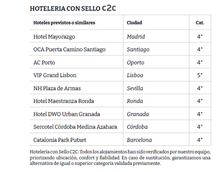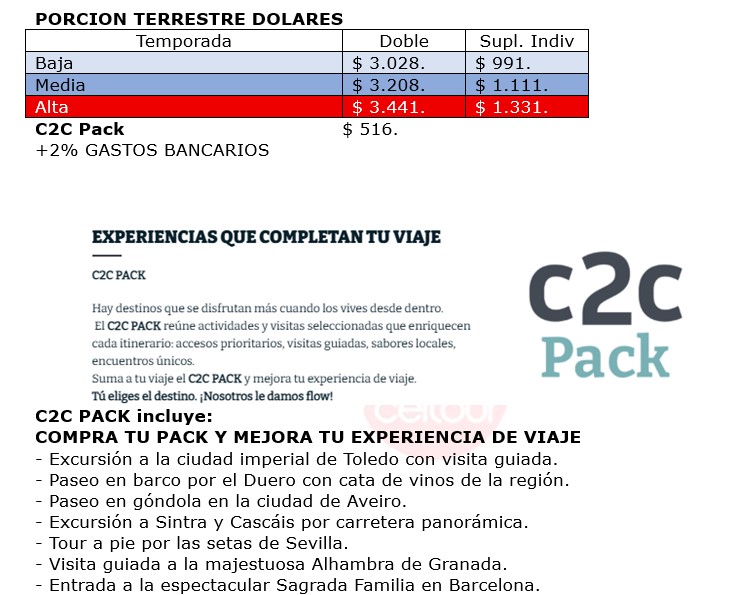 – Visitas mencionadas como incluidas en el C2C PACK (es válido si se agrega a la reserva desde el país de origen)
