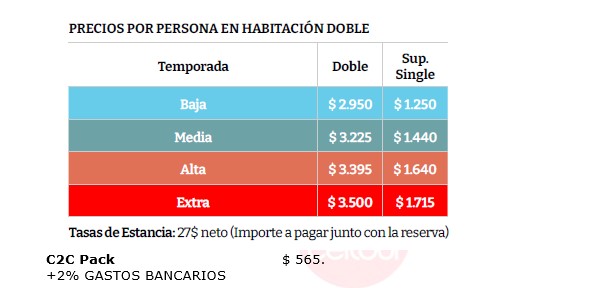 – Visitas mencionadas como incluidas en el C2C PACK (es válido si se agrega a la reserva desde el país de origen)