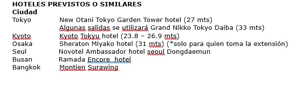 • En general ningún servicio que no este claramente descrito en el itinerario