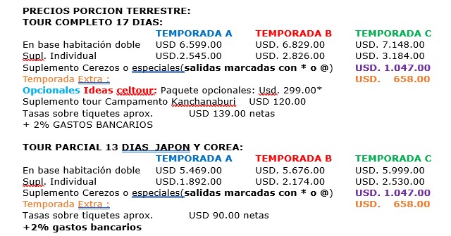 APLICAN CONDICIONES GENERALES DEL FOLLETO IMPRESO DESTINOS CELTOUR 2025