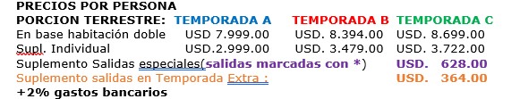 (*)Las plazas del ferry son limitadas, se debe emitir inmediatamente se confirme la reserva y en caso de reservas de ultima hora o por fechas de alta demanda se reemplazará por aéreo *sujeto a cargos extras*