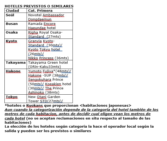 *** Sus maletas se transportarán directamente al hotel en Tokyo. Por favor preparen equipaje de mano para 2 noches ***