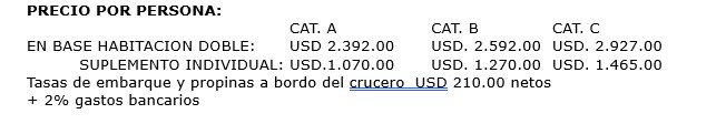 **Precios sujetos a cambio sin previo aviso por diferentes variables por lo cual se deben tomar como precios ilustrativos **