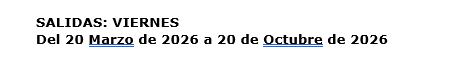 Salidas: Marzo 20 a Octubre 20 de 2026