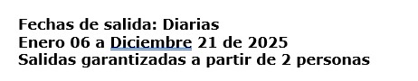 Para realizar reservas en firme se requiere un depósito del 30% del valor total de la cotización por persona y cuyo valor será abonado al pago total.